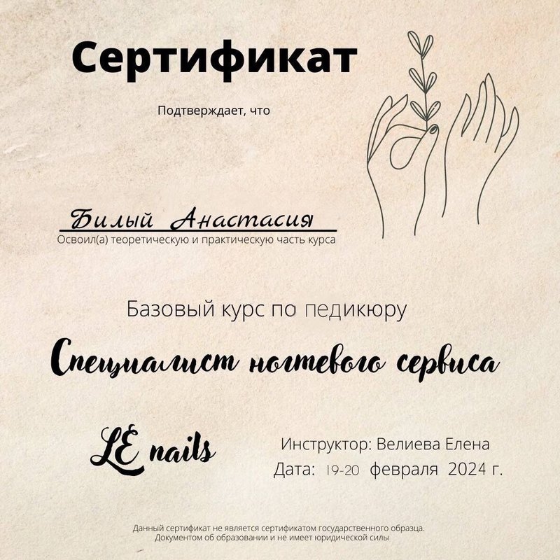 Подробнее о компании Студия маникюра и педикюра Анастасии Билый